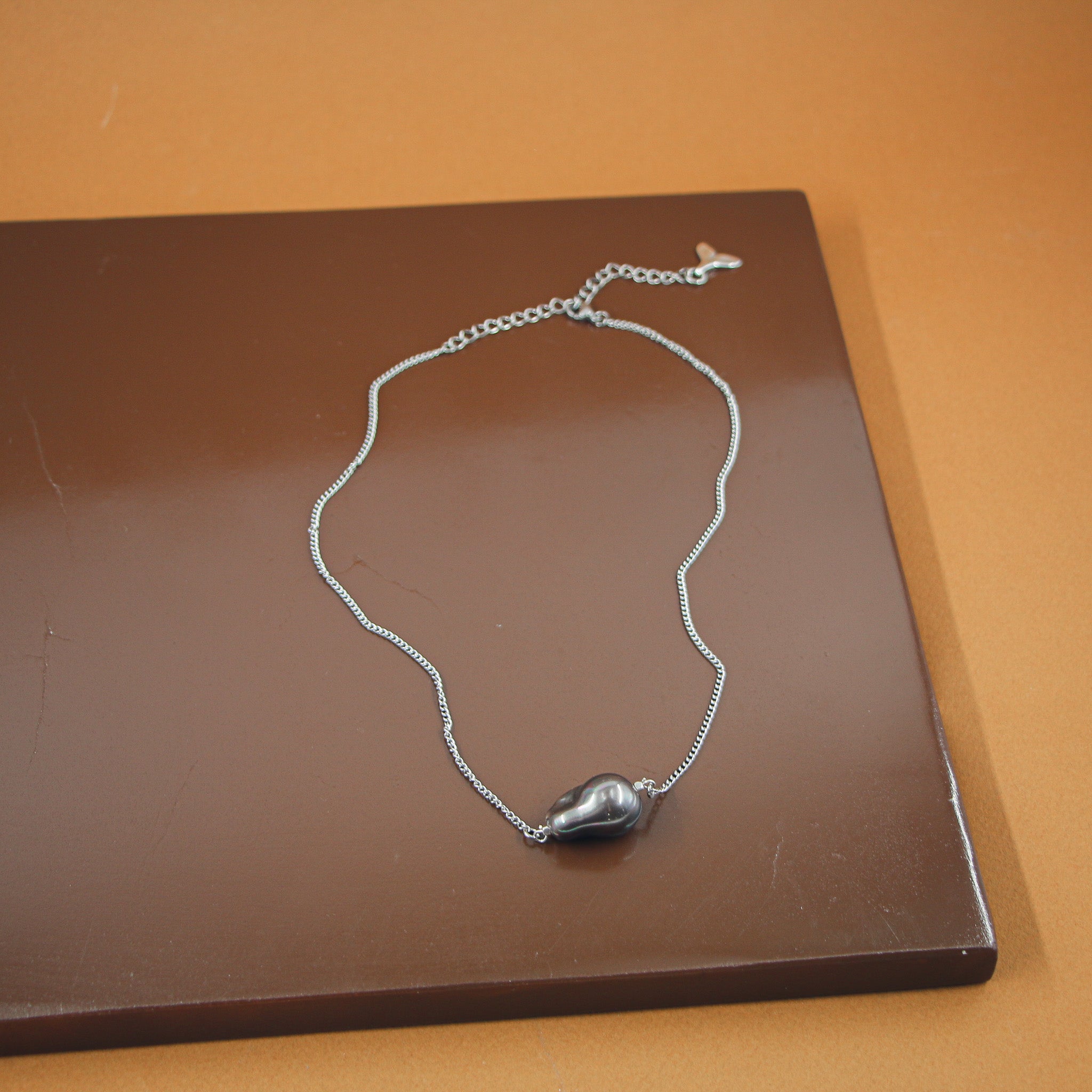 • Κολιέ με ατσάλινη αλυσίδα και πέρλα