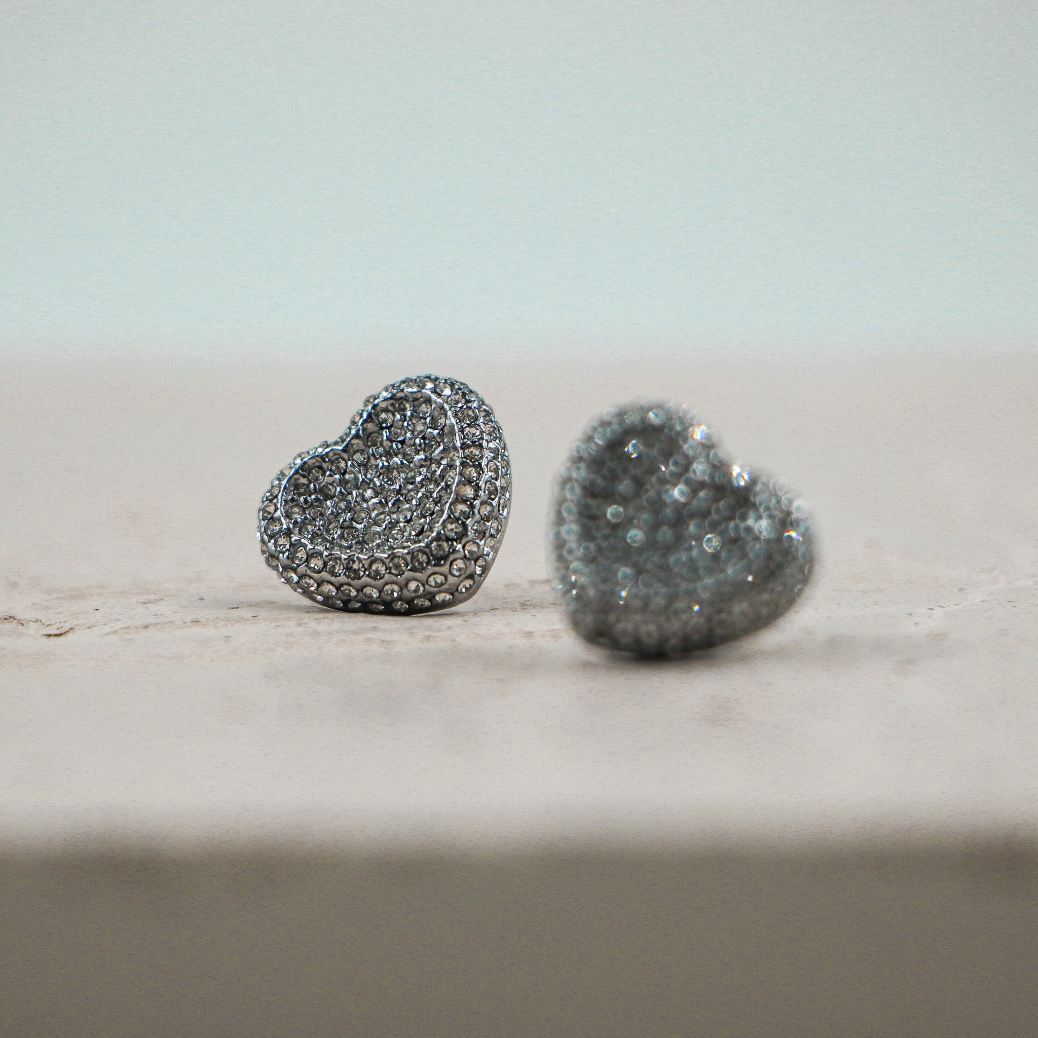 • Ατσάλινα σκουλαρίκια καρφί καρδιά με στρας