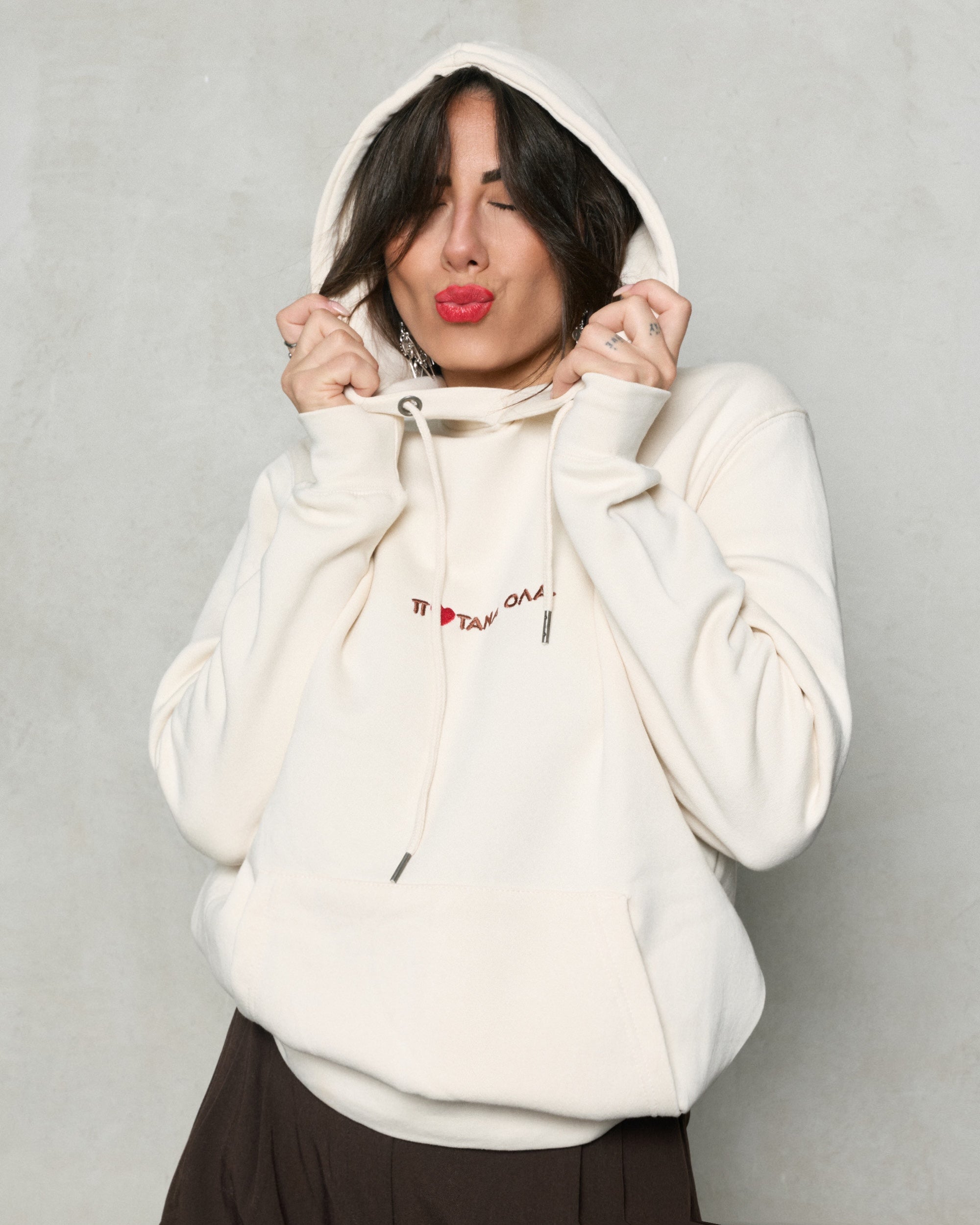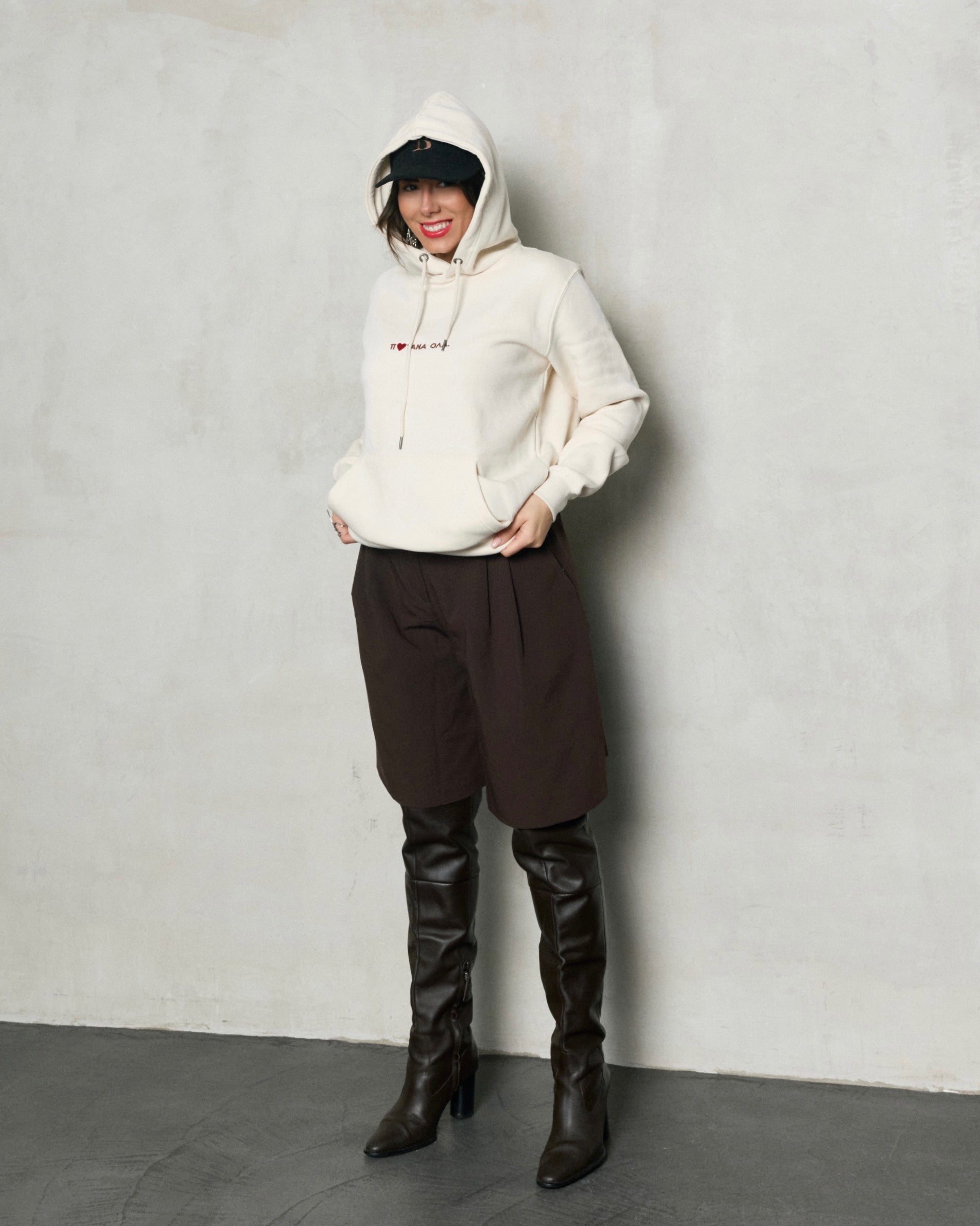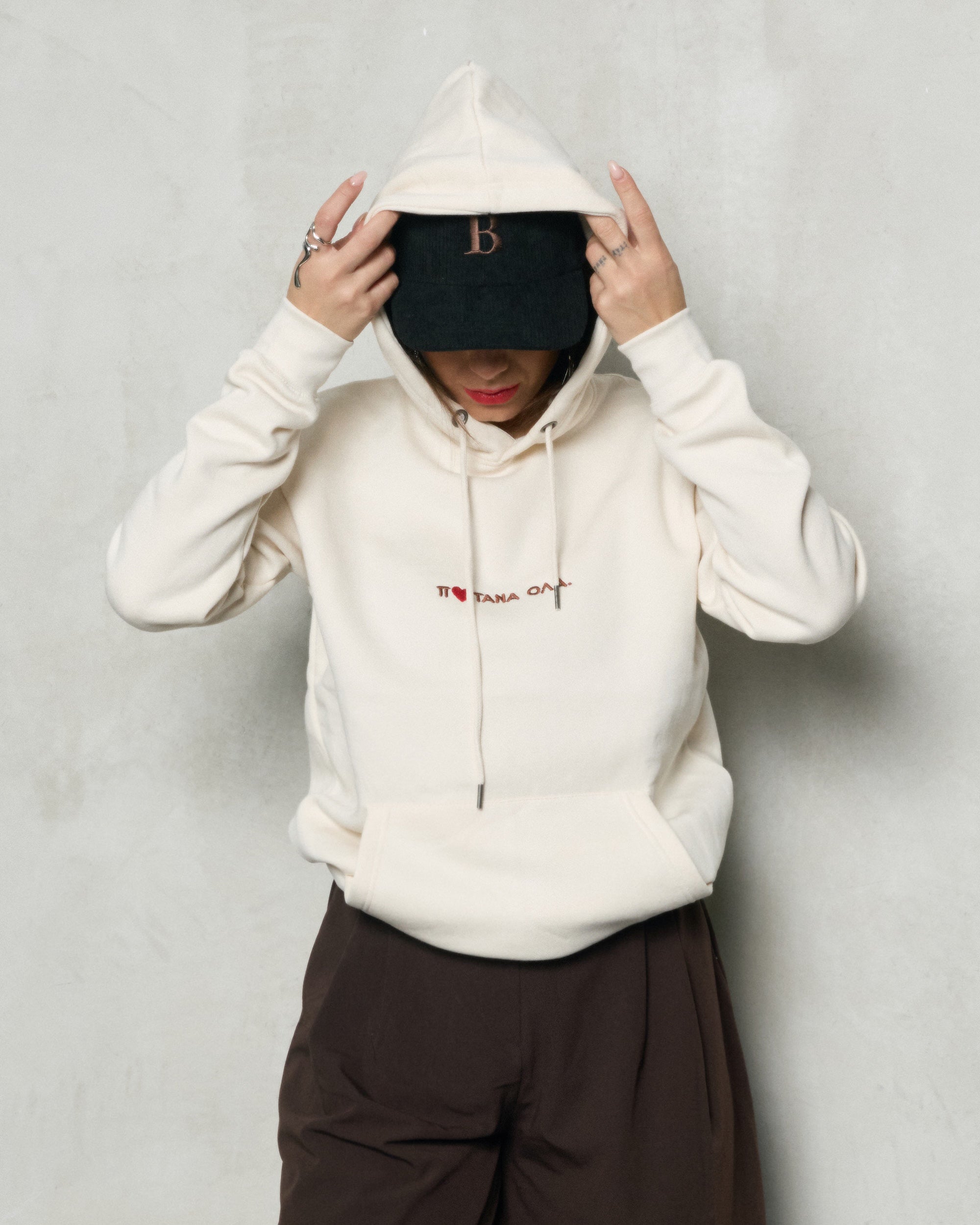 • Off white φούτερ με κουκούλα oversize
