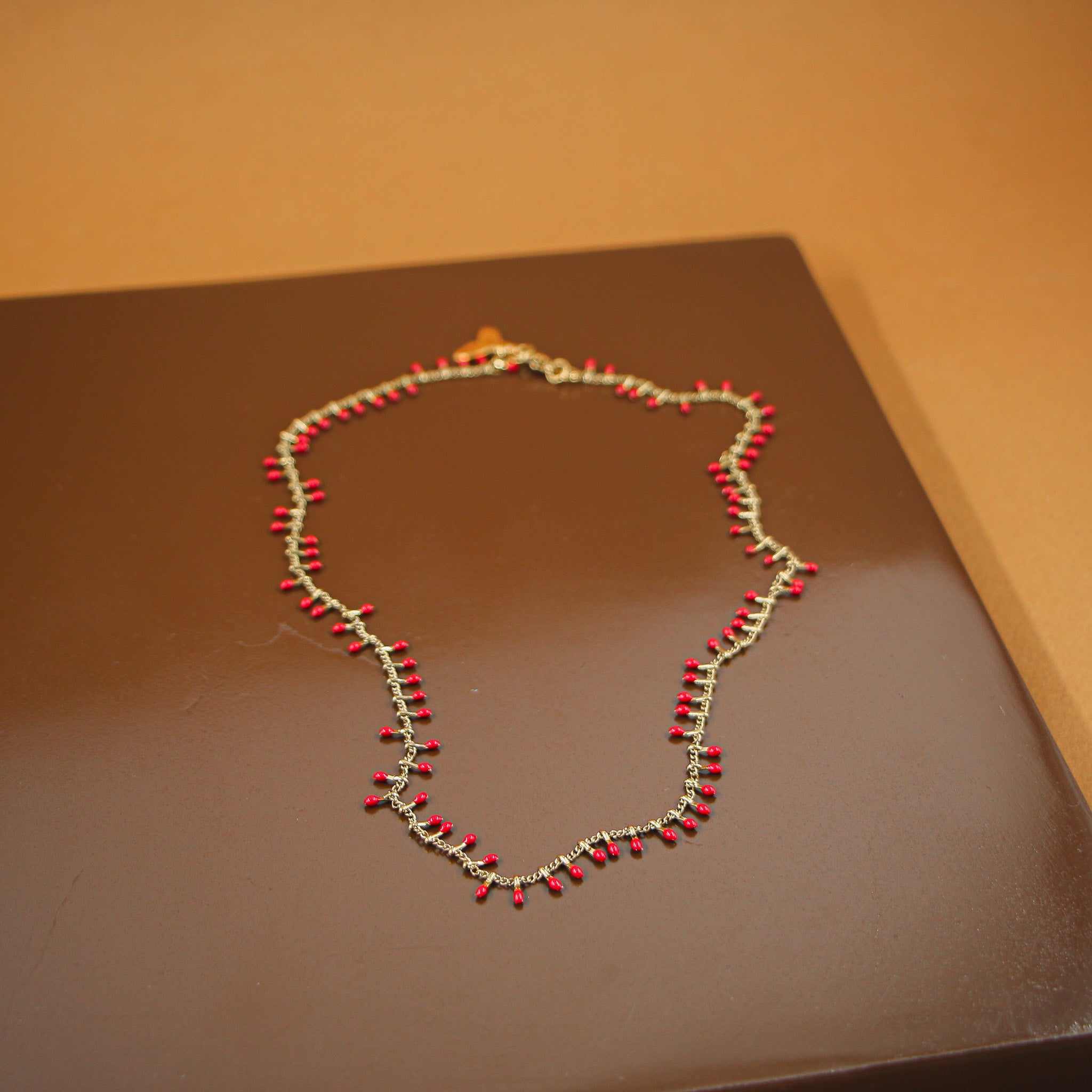 • Ατσάλινο κολιέ επιχρυσωμένο με κόκκινο σμάλτο