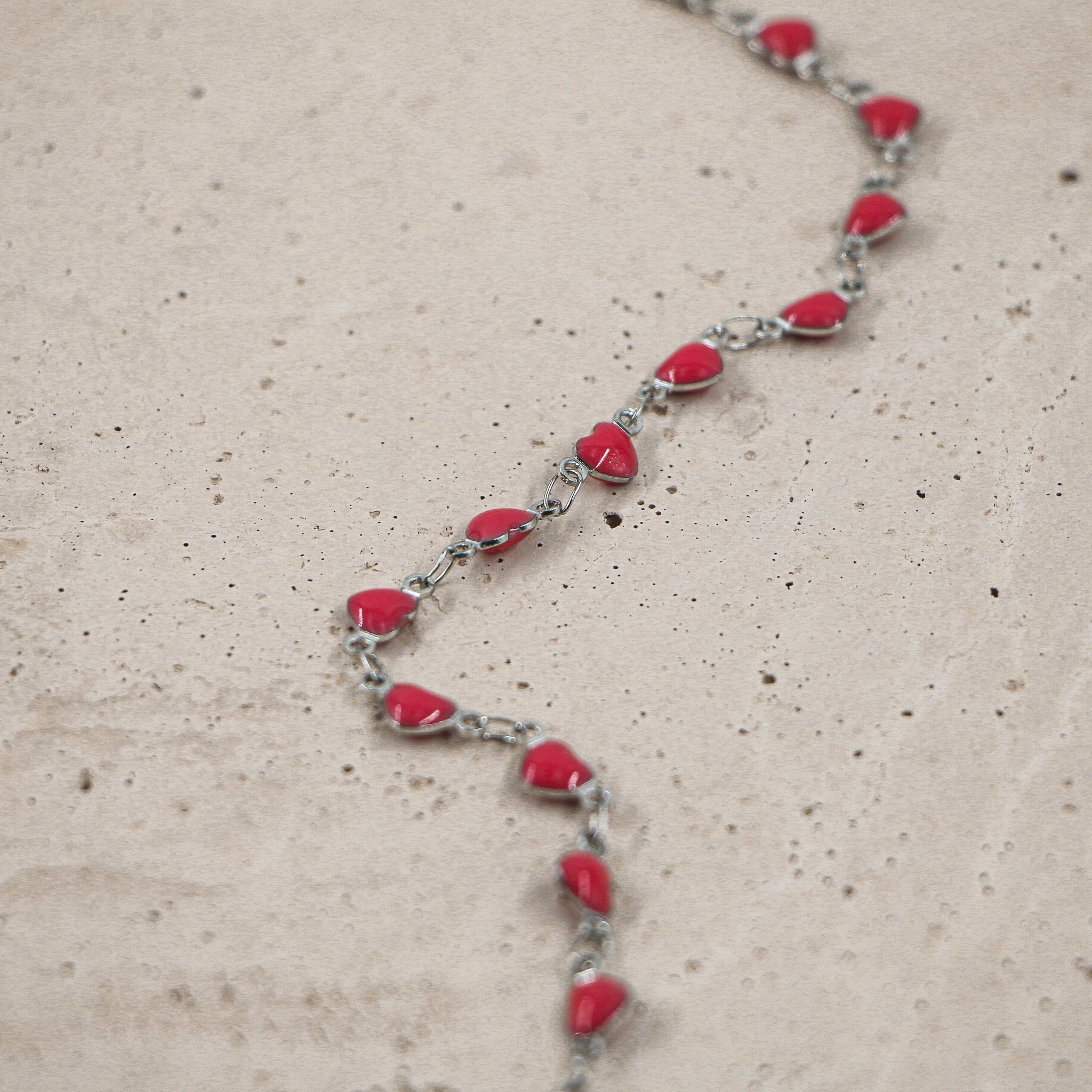 • Ατσάλινο κολιέ με καρδιές σμάλτο