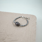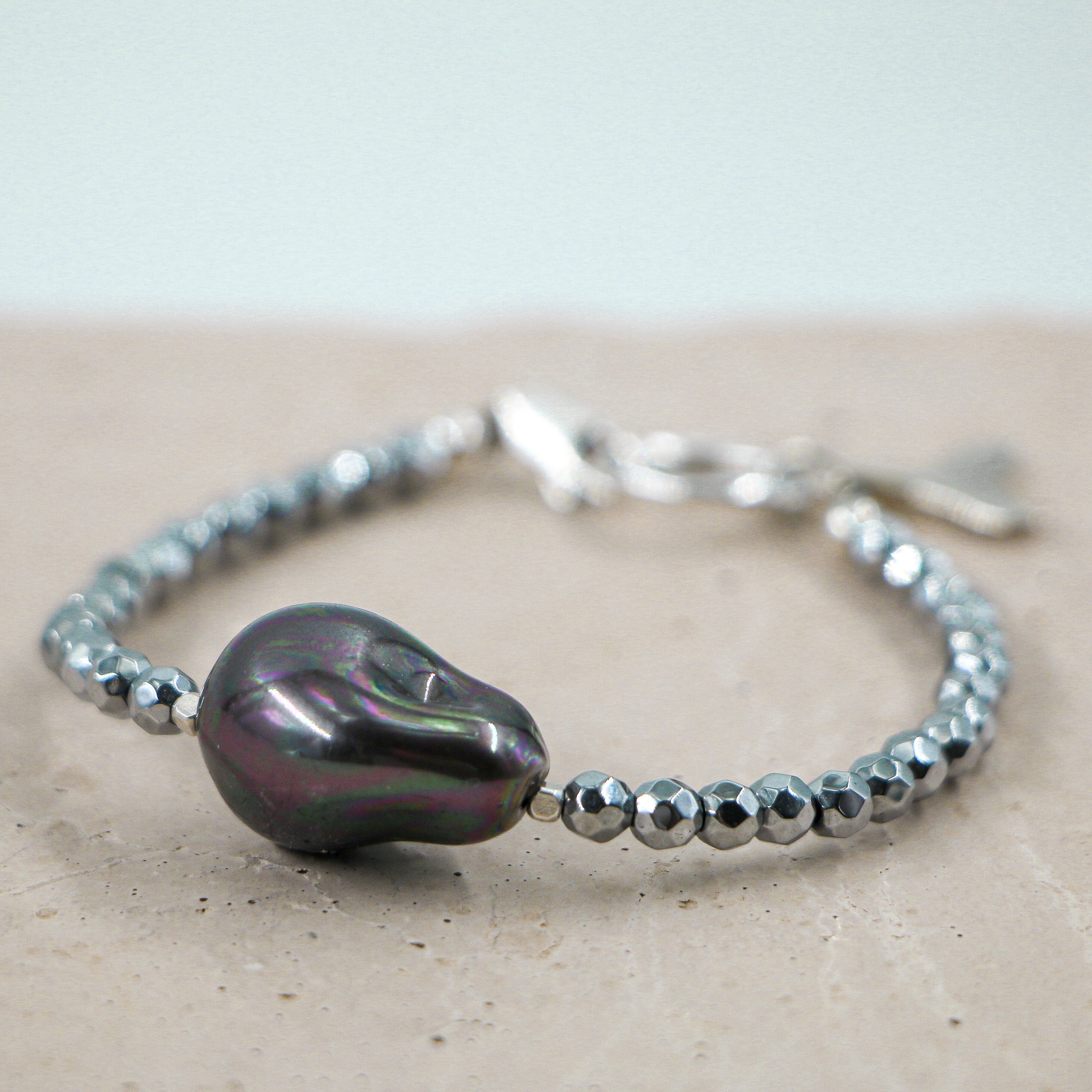• Βραχιόλι με ασημί αιματίτη και περαστή πέρλα γκρί