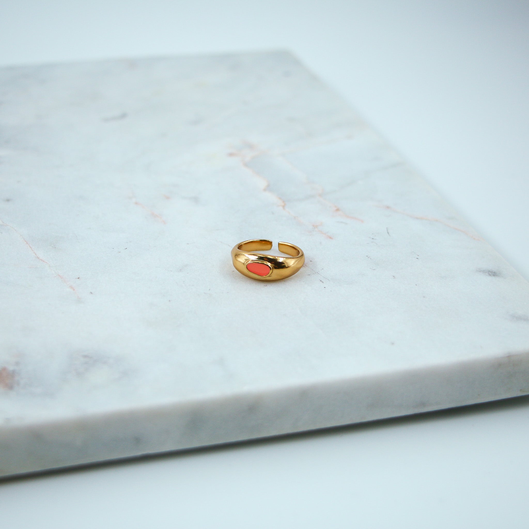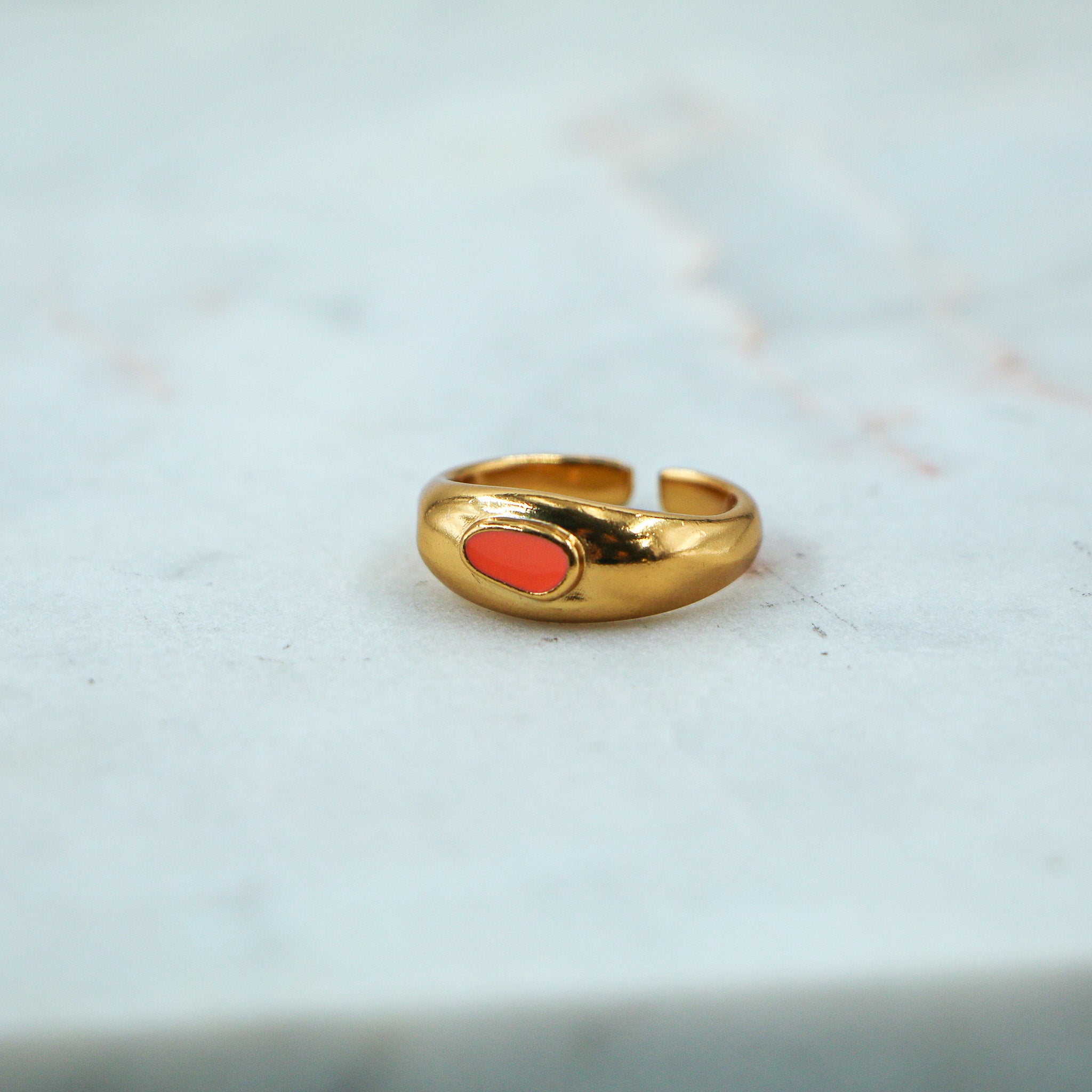 • Ορειχάλκινο επιχρυσωμένο δαχτυλίδι με πορτοκαλί σμάλτο