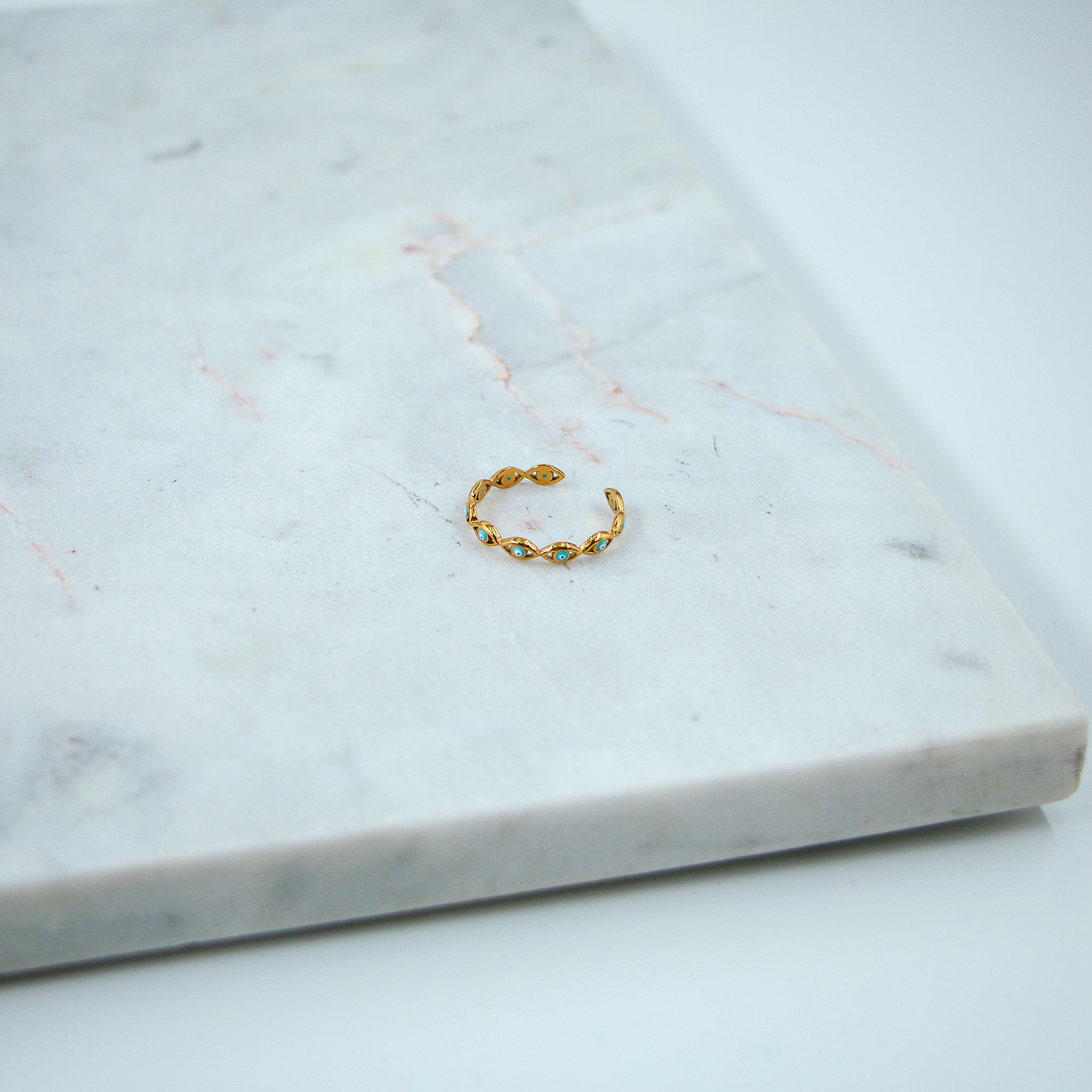 • Ατσάλινο επιχρυσωμένο δαχτυλίδι με γαλάζια ματάκια