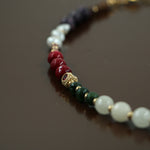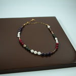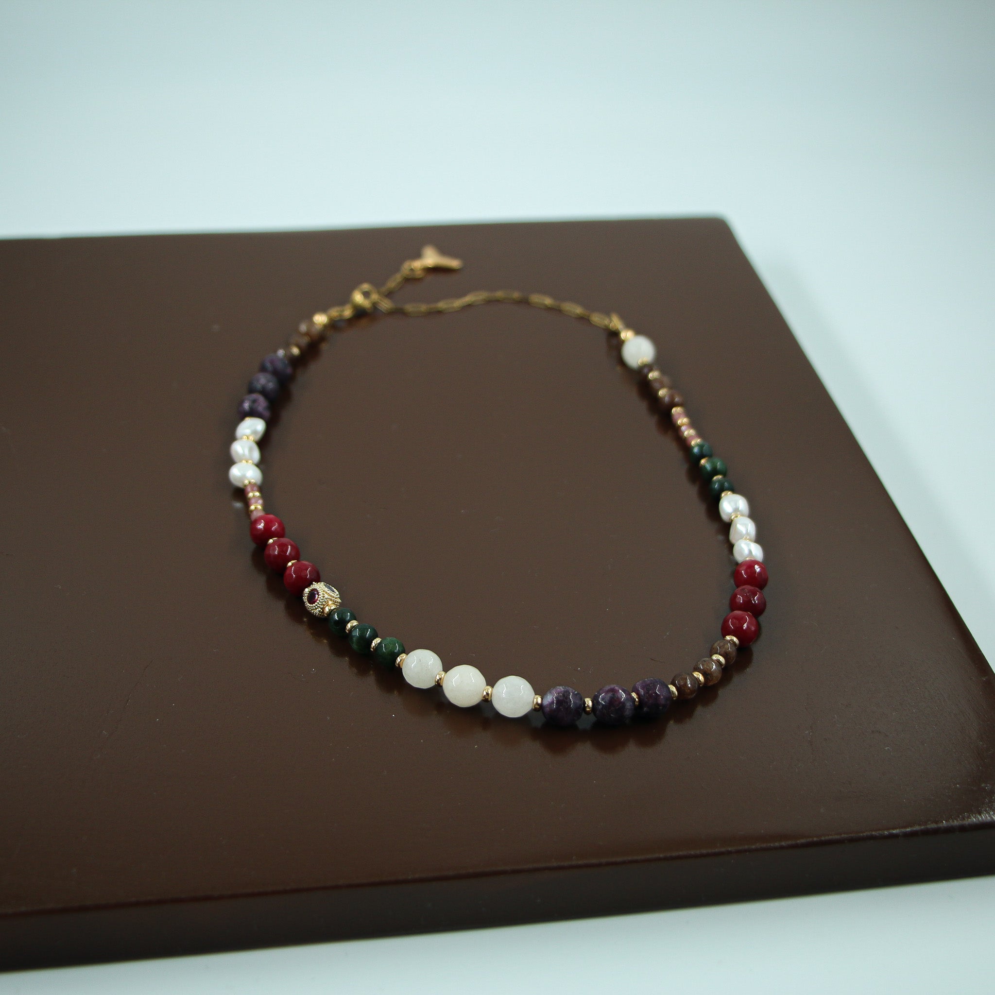 • Κολιέ με περαστές ημιπολύτιμες χάντρες και ορειχάλκινα επιχρυσωμένα στοιχεία