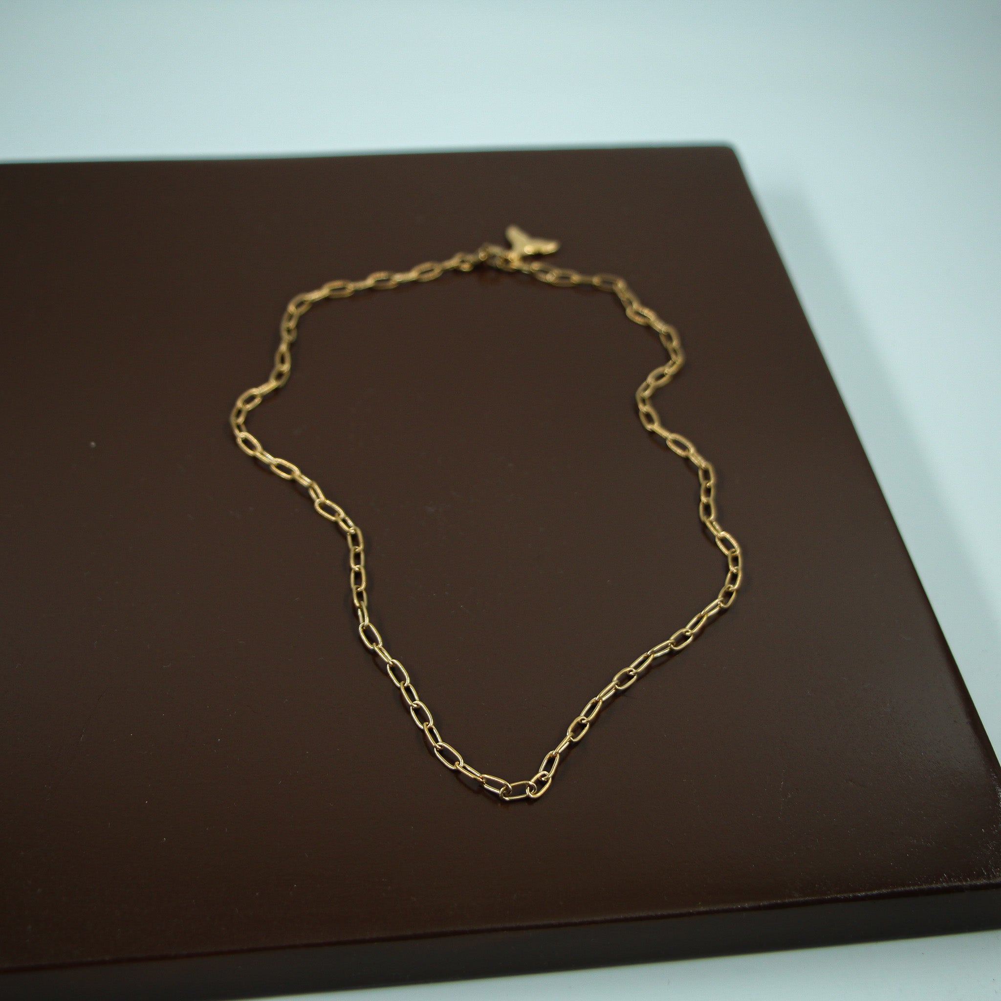 • Κολιέ με ατσάλινη αλυσίδα οβάλ επιχρυσωμένη