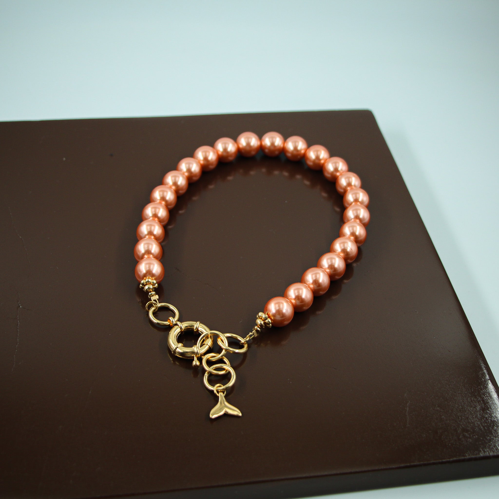 • Κολιέ με στρογγυλή πέρλα 14mm πορτοκαλί