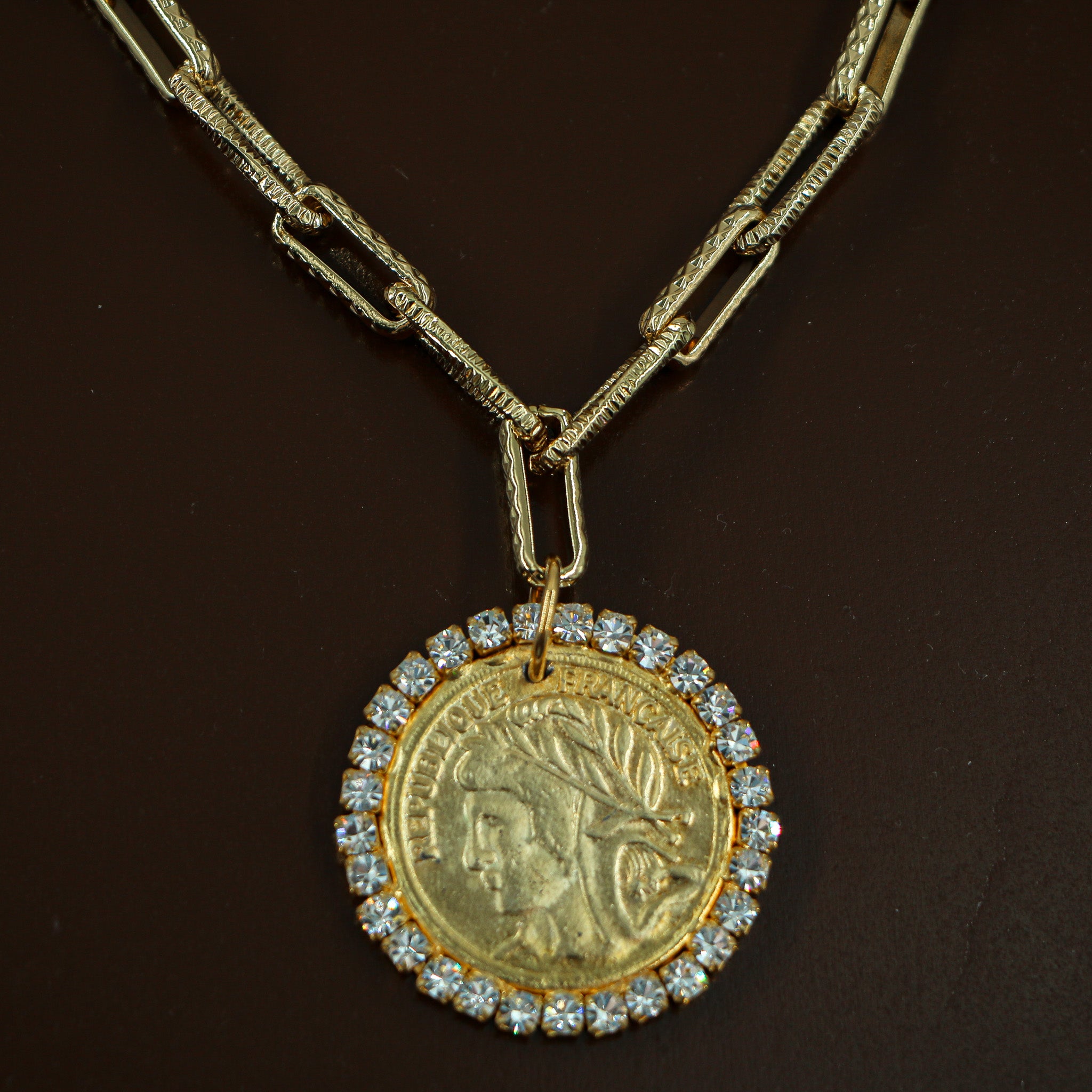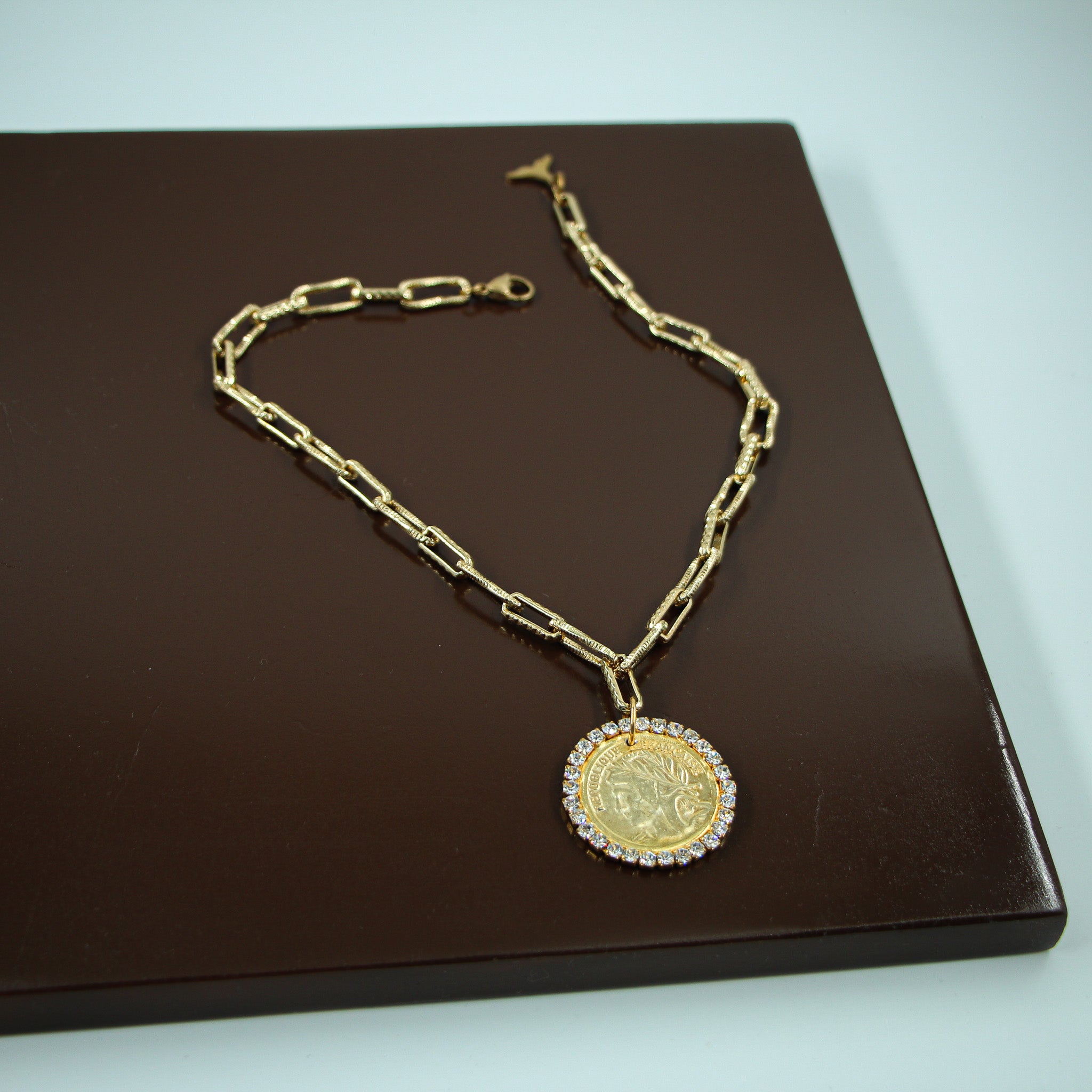 • Κολιέ με ατσάλινη αλυσίδα ιριδίζον επιχρυσωμένη