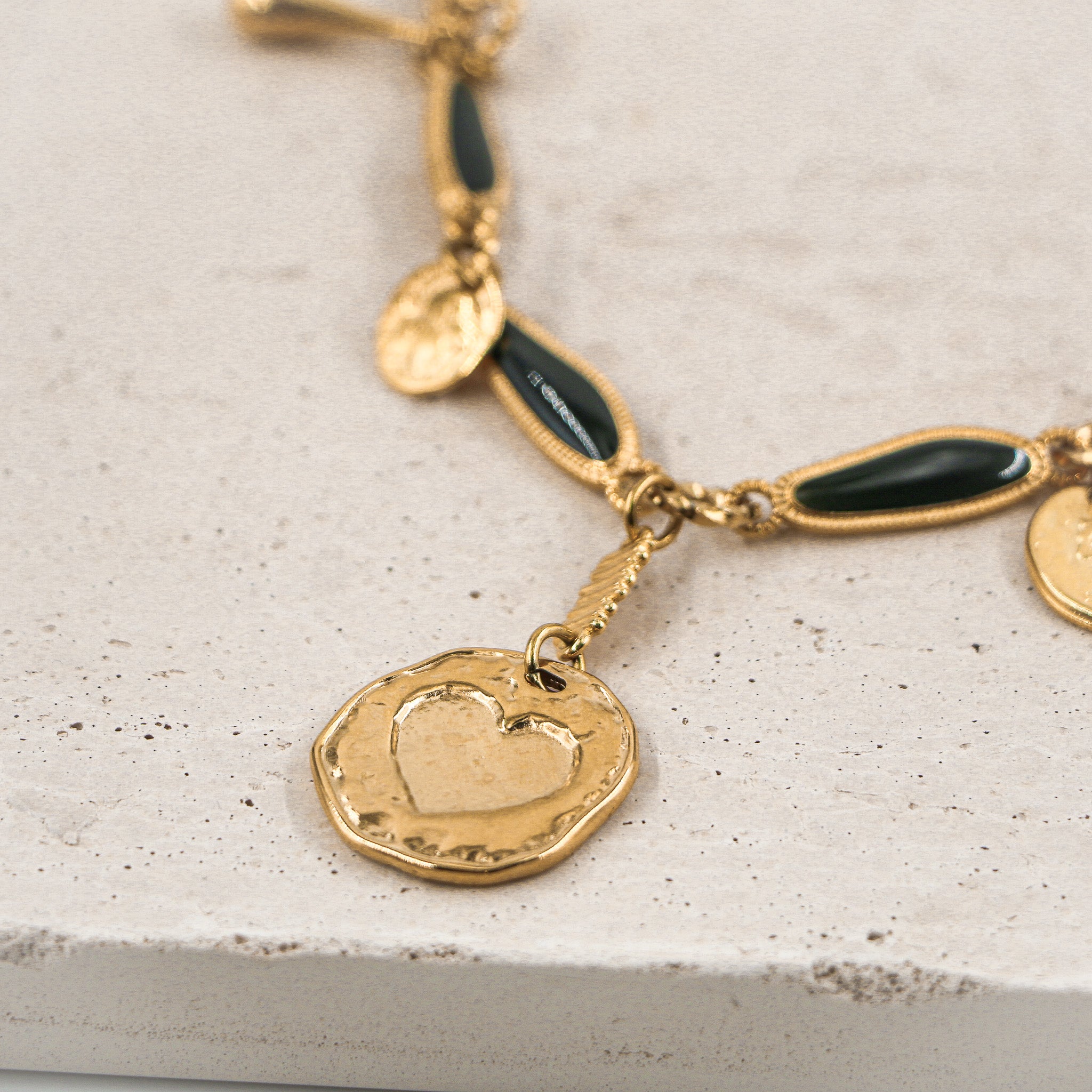 • Κολιέ ορειχάλκινο με καφέ σμάλτο συνδυασμένο με ατσάλινη αλυσίδα επιχρυσωμένη