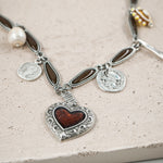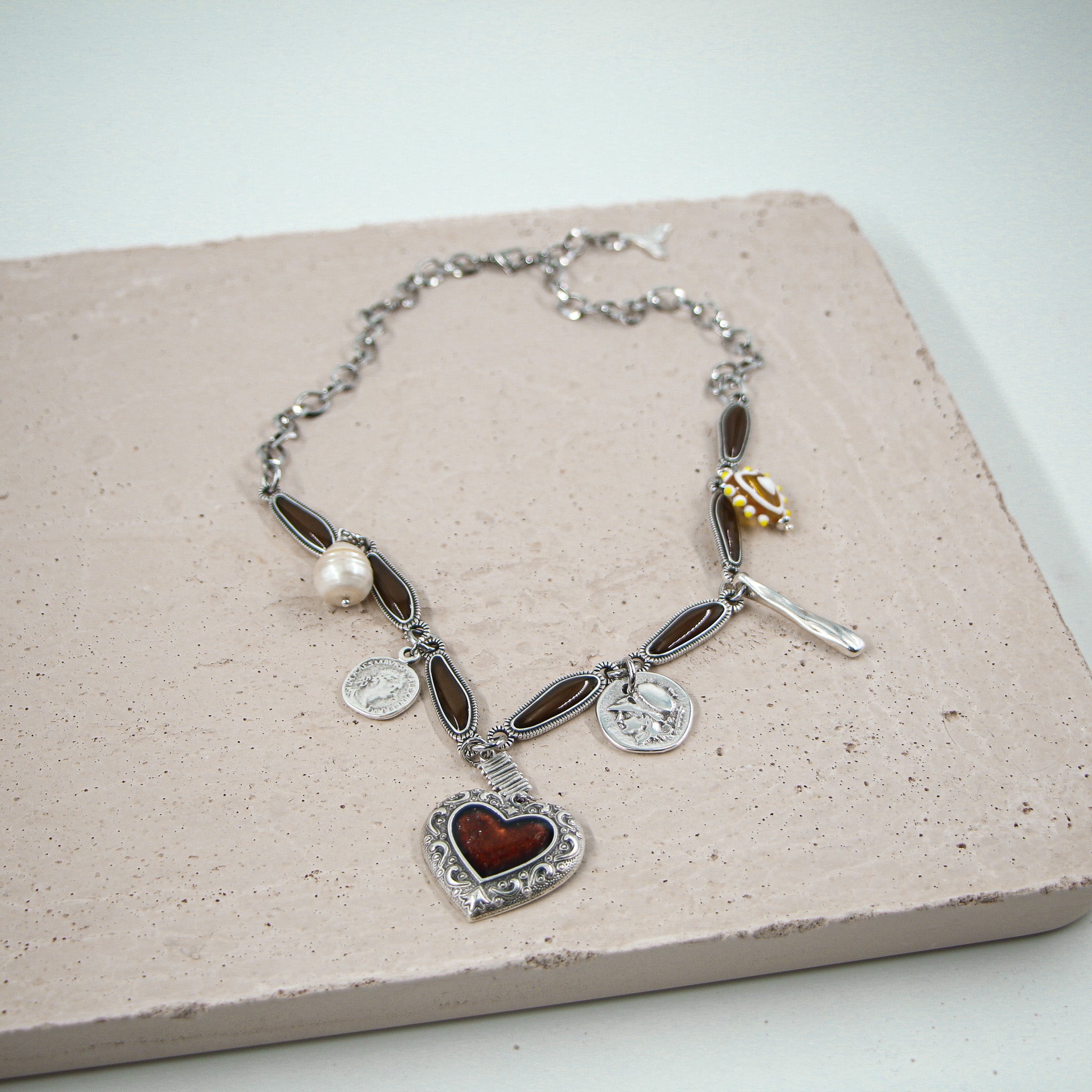 • Κολιέ ορειχάλκινο με καφέ σμάλτο συνδυασμένο με ατσάλινη αλυσίδα