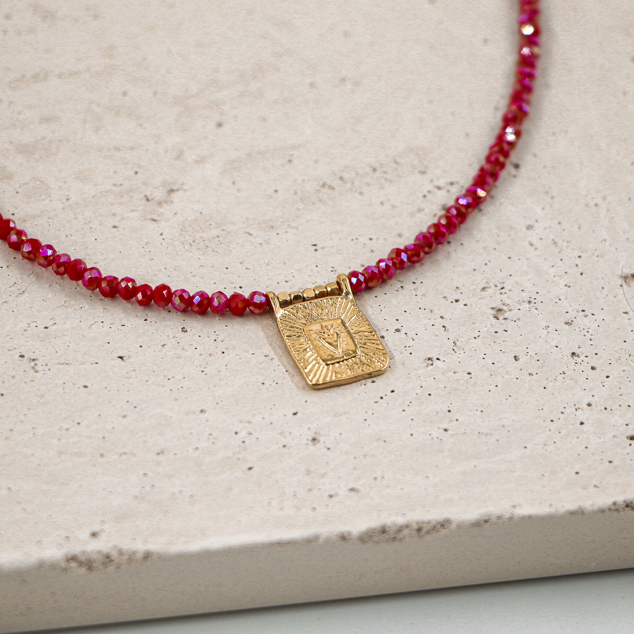 • Κολιέ με γυάλινες χάντρες ιριδίζων