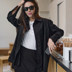 • Μονόχρωμο μαύρο πουκάμισο oversize ποπλίνα