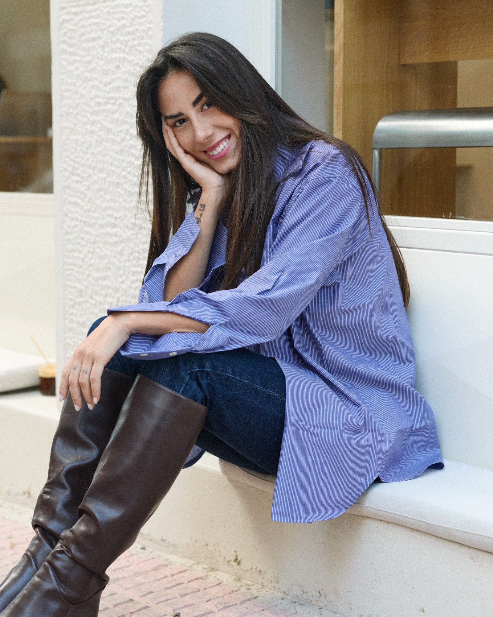 • Ριγέ πουκάμισο oversize ποπλίνα
